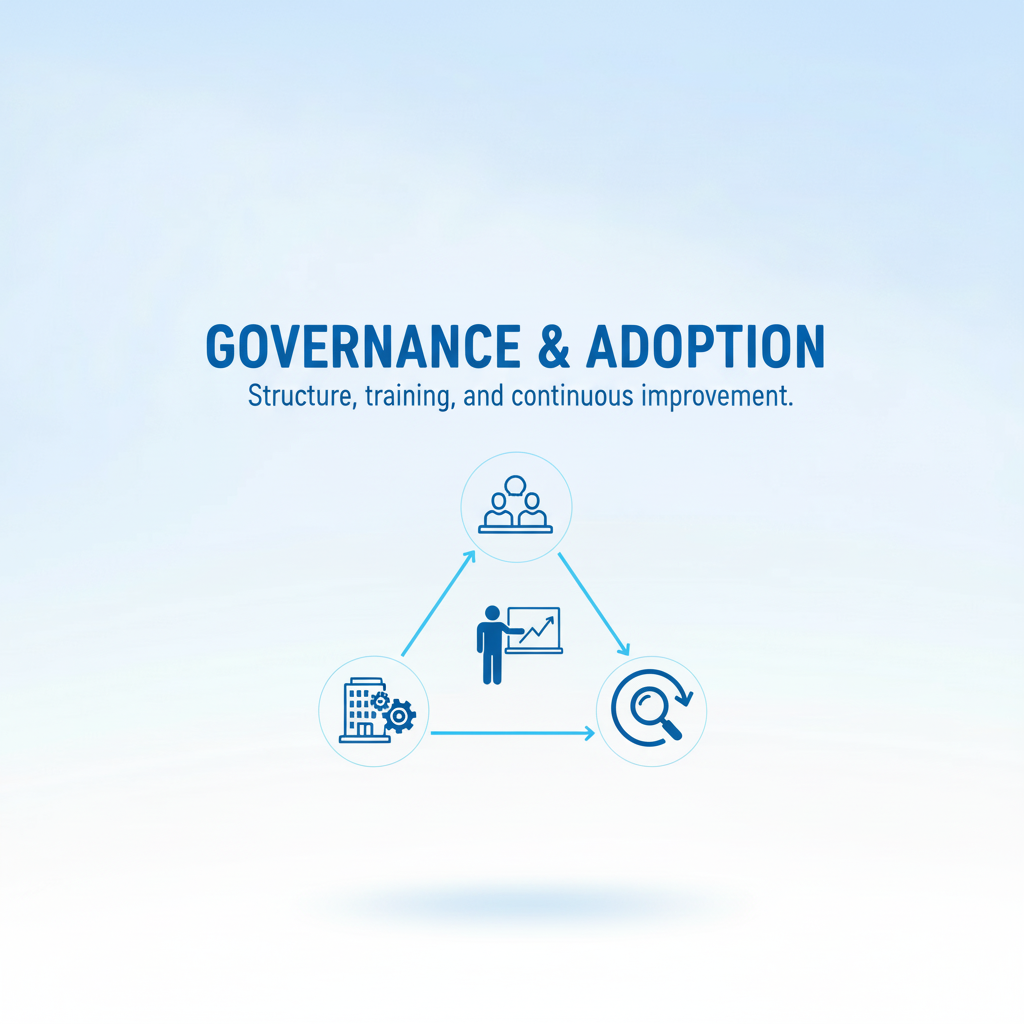Adoption-focused rollout: documentation, training, and operational readiness.